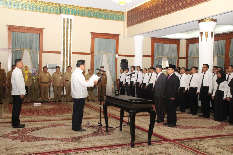 Pelantikan sendiri berjalan secara tertib dan lancar, adapun dalam penandatangan berita acara pengambilan sumpah jabatan yang bertindak sebagai saksi dalam penandatanganan itu adalah Asisten Bidang Pemerintahan Raja Ariza dan Kepala BKPSDM Firdaus.