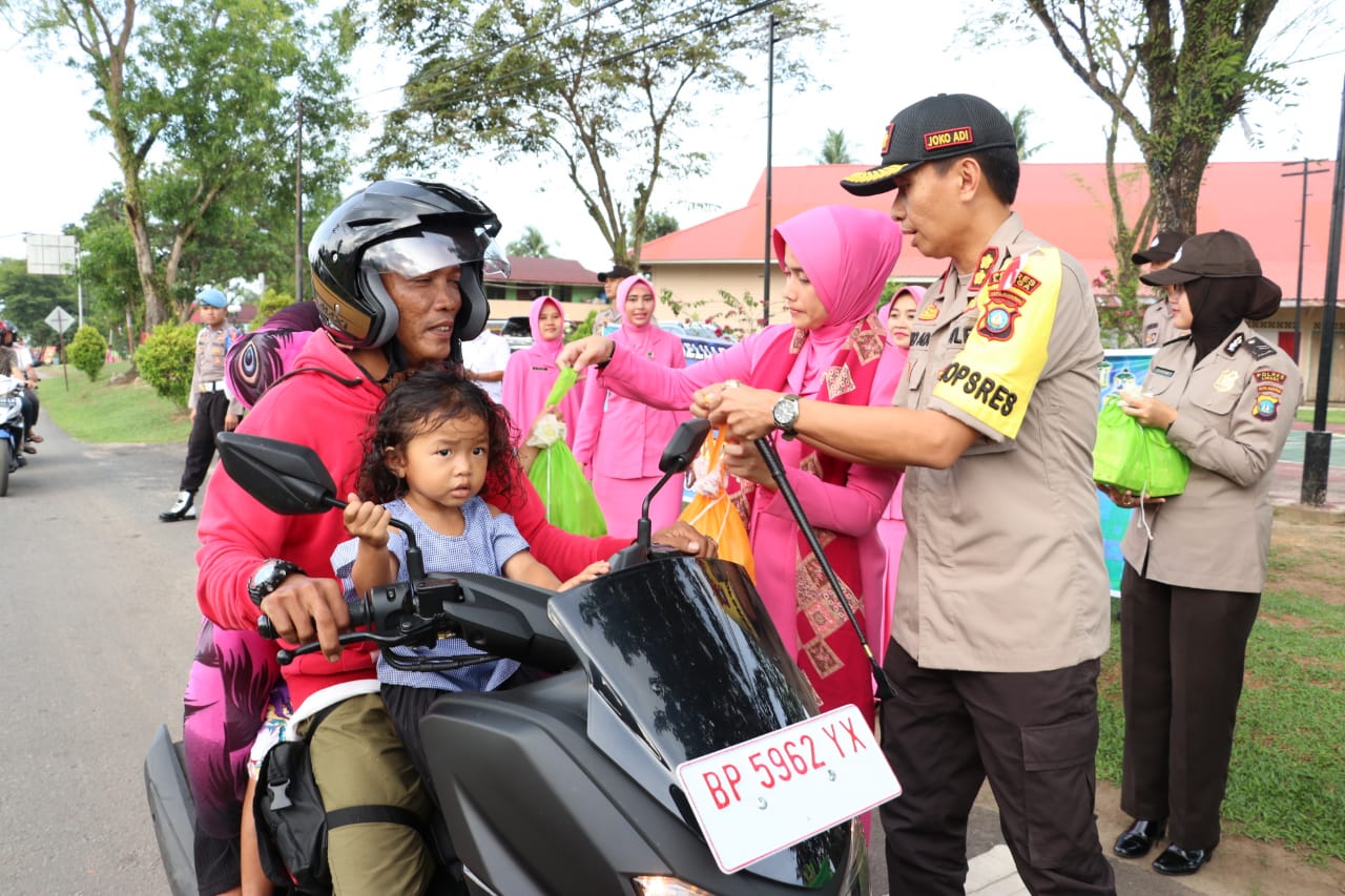Kegiatan pembagian takjil yang dipimpin langsung Kapolres Lingga, AKBP Joko Adi Nugroho, bersama Ketua Bhayangkari Cabang Lingga, Linda Joko Adi Nugroho, merupakan agenda rutin yang dilaksanakan Porles Lingga setiap tahun pada bulan puasa.