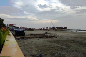 Dilokasi pengerjaan proyek pembangunan infrastruktur penataan kawasan pesisir pantai gurindam 12 Kota Tanjungpinang juga terhenti. Tidak terlihat aktivitas pekerja yang biasanya hingga larut malam.