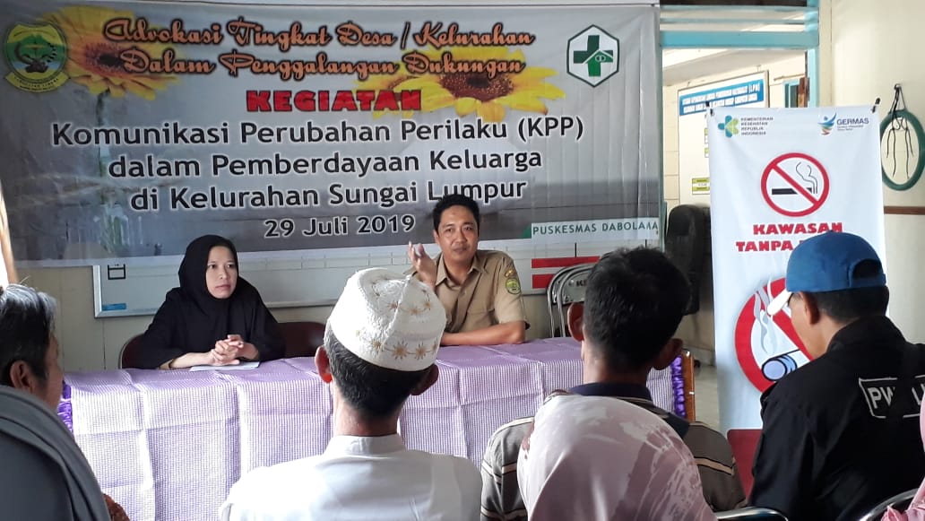 Advokasi tingkat desa/kelurahan dalam penggalangan dukungan kegiatan Komunikasi Perubahan Perilaku (KPP) dalam Pemberdayaan Keluarga di Kelurahan Sungai Lumpur, Senin 29 Juli 2019 merupakan program Indonesia sehat.