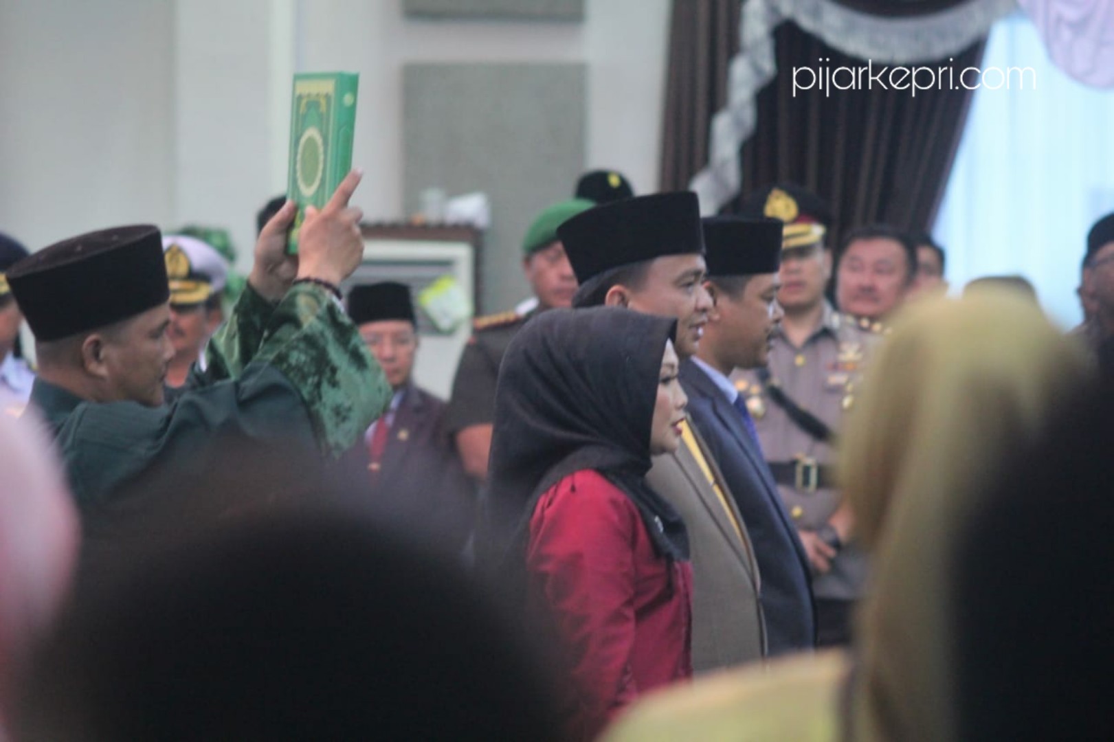 Ketua Pengadilan Negeri Kota Tanjungpinang, Admiral mengambil sumpah dan janji ketiga pimpinan DPRD Tanjungpinang masa jabatan 2019-2024, dilanjutkan penyerahan palu sidang dari Ketua Sementara Agus menyerahkan kepada ketiga unsur pimpinan DPRD Kota Tanjungpinang.