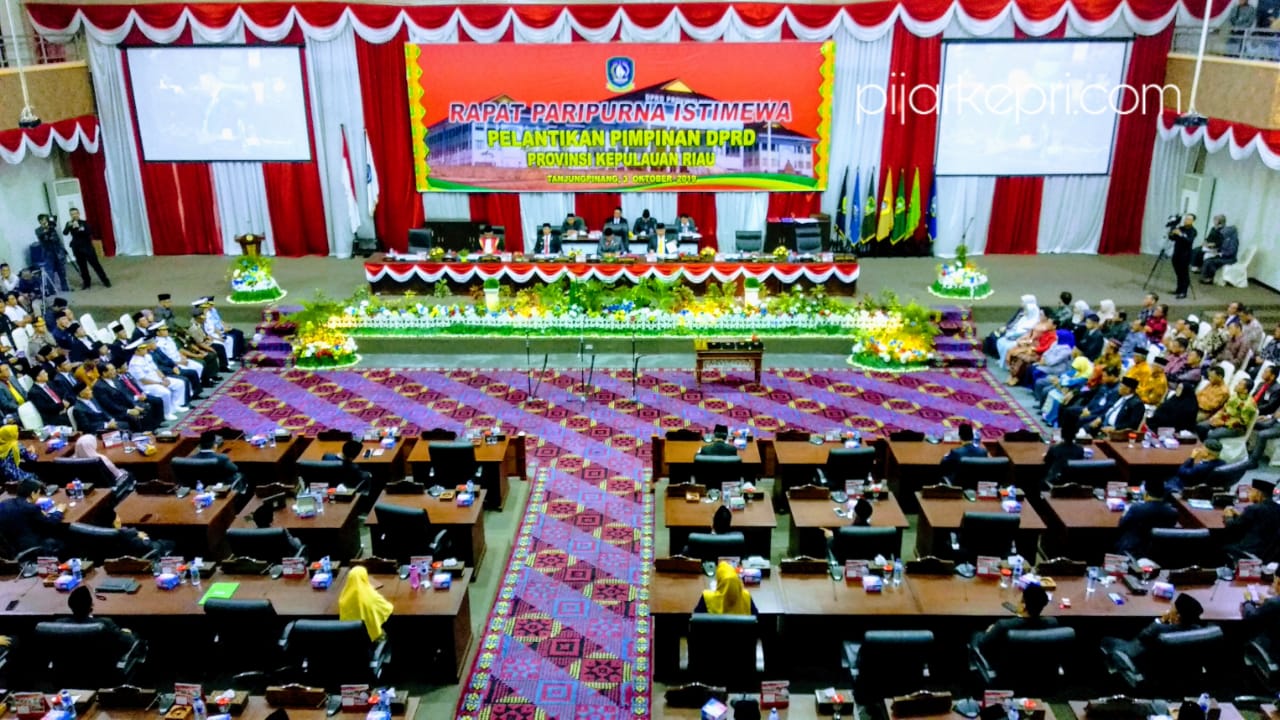 PIJARKEPRI.COM, Tanjungpinang – Sekretaris Dewan Provinsi Kepulauan Riau, Hamidi membacakan Keputusan Menteri Dalam Negeri nomor 161.21-5295 tahun 2019 tentang peresmian pengangkatan pimpinan DPRD Kepri masa jabatan 2019-2024, di Gedung DPRD Kepri, Dompak, Kamis (3/10).
