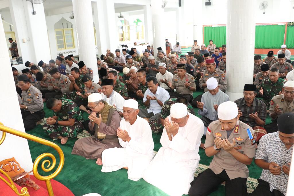 Kegiatan do’a bersama yang dihadiri, Kapolres Lingga, AKBP Joko Adi Nugroho, juga dihadiri Wakapolres Lingga, Kompol Isa Imam Syahroni, Imam Masjid Azzulfa Dabo Singkep, H. Usman Amha, Perwakilan MUI Kabupaten Lingga, Ustadz Ilhamuddin, Tokoh Agama Kabupaten Lingga, Kisanjaya, PJU Polres Lingga, Personel Polres Lingga, Personel Polsek Dabo Singkep, Personel Lanal Dabo Singkep, Personel Koramil Dabo Singkep, Personel Satpol PP dan Damkar Kabupaten Lingga, Tokoh Masyarakat dan Masyarakat Kabupaten Lingga.(ACI)