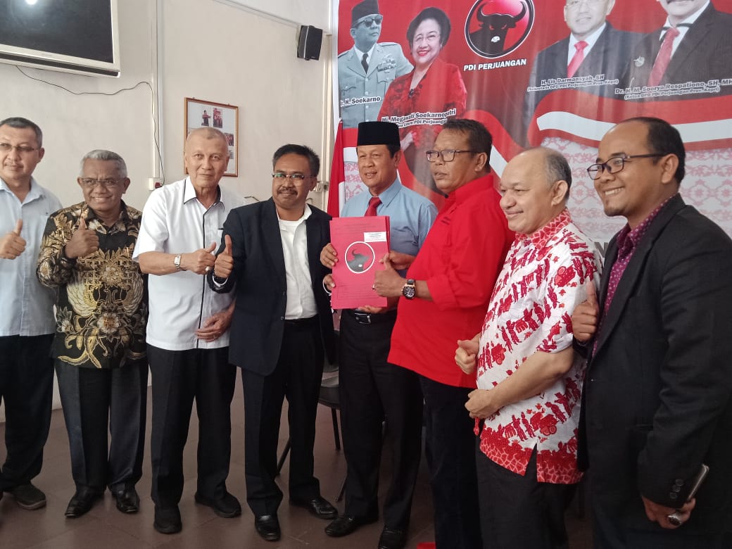 Isdianto lebih dulu mengambil berkas pendaftaran bakal calon Gubernur dan Wakil Gubernur Kepri Pilkada serentak 2020, di Sekretariat DPD PDI Perjuangan, Jalan DI Panjaitan Tanjungpinang, Senin (7/10/2019). Beberapa jam menyusul Ketua DPD PDI Perjuangan Kepri, Soerya Respationo mengambil berkas pendaftaran.