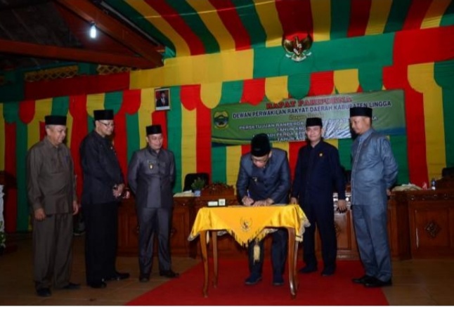 Pengesahan APBD 2020 tersebut, dalam rapat paripurna yang digelar DPRD Lingga dengan agenda penyampaian pendapat akhir fraksi-fraksi terhadap rancangan peraturan daerah (Ranperda) tentang penanggung jawaban pelaksanaan APBD tahun 2020, bertempat di Replika Istana Damnah, Daik Lingga.