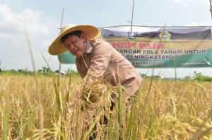 Di lokasi ini, lahan siap tanam seluas 50 hektar dan padi yang sudah ditanam seluas 11,5 hektar. Yang dipanen pada hari ini seluas 6 hektar. Sisanya 5,5 hektar panen sebelumnya karena ditanam dengan waktu berbeda. Kegiatan ini juga sebagai bentuk pengembangan pola tanam untuk mendukung peningkatan IP (Indeks Pertamanan) yang diupayakan dalam setahun 2 kali panen.