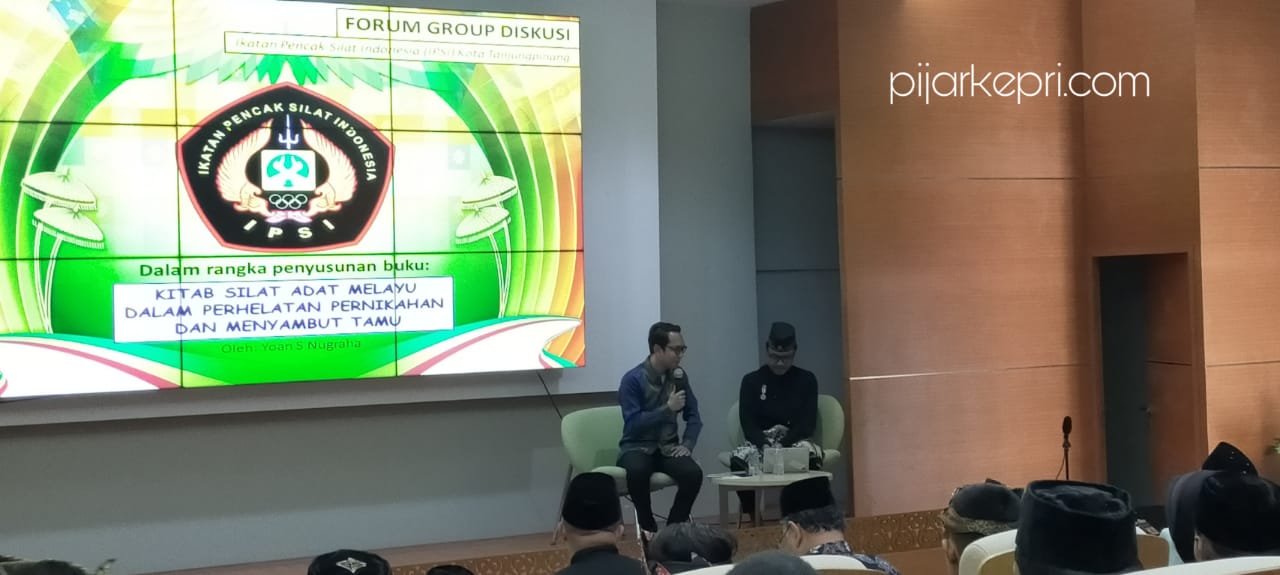 PIJARKEPRI.COM, Tanjungpinang – Ikatan Pencak Silat Indonesia (IPSI), di Tanjungpinang, Kepualuan Riau meluncurkan buku Kitab Silat Adat Melayu dalam perhelatan pernikahan dan menyambut tamu sekaligus Forum Grub Diskusi, di Ruang Studio Dinas Perpustakaan dan Arsip Daerah Provinsi Kepulauan Riau, Selasa (3/3/2020).
