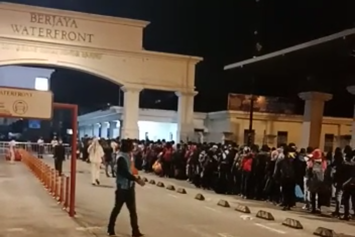 Dalam sebuah video amatir yang diunggah diterima pijarkepri.com, memperlihatkan ribuan TKI bersama WNI yang masih di Malaysia mengantre di Pelabuhan Situlang Laut, Malaysia, Senin (30/3/2020) dinihari.