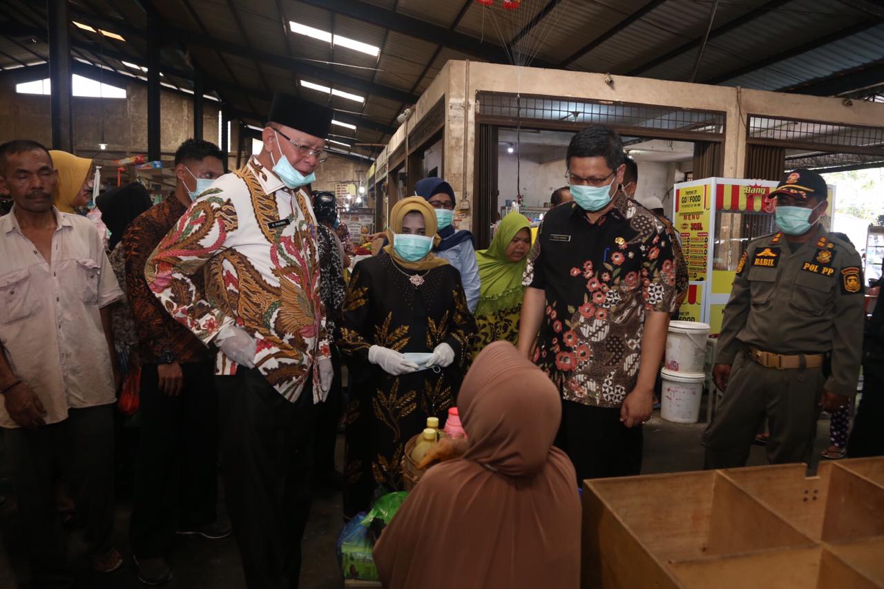 PIJARKEPRI.COM Tanjungpinang – Mengantisipasi penyebaran virus Covid-19 di wilayah Kota Tanjungpinang, Walikota Tanjungpinang, H. Syahrul, S.Pd dan Wakil Walikota Tanjungpinang, Hj. Rahma, S.IP memberikan masker kepada masyarakat dan pedagang di Pasar Bintan Center, Kamis (26/3).