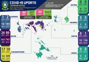 Dari 44 pasien positif itu, 26 di antaranya berada di Batam. Ada 17 pasien positif di Tanjungpinang dan satu di Karimun. Daeu jumlah itu, lima di antaranya sudah sembuh, yaitu pasien pertama di Tanjungpinang, pasien di Karimun dan tiga lagi pasien di Tanjungpinang.