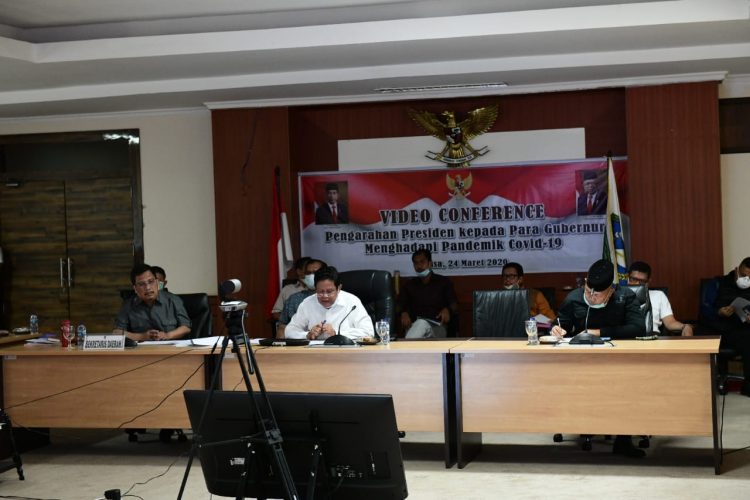 PIJARKEPRI.COM – Plt. Gubernur Kepri H. Isdianto memimpin Rapat melalui Video Conference bersama Bupati dan Wali kota se-Provinsi Kepri Terkait Percepatan Penanganan Covid-19 di Rupatama Lt.4, kantor Gubernur, Pulau Dompak, Tanjungpinang, Ahad (5/4).
