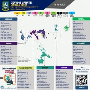 “Hari ini terkonfirmasi dua di Bintan. Semoga sebarannya tidak sampai ke Natuna, Anambas dan Lingga,” kata Isdianto di Gedung Daerah Tanjungpinang, Sabtu (18/4).