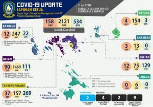 Dalam laporannya, orang dalam pemantauan (ODP) juga terus meningkat. Jika sebelumnya berjumlah 2.088, Sabtu ini ODP di Kepri berjumlah 2.121 jiwa. Sebaran terbanyak masih di Batam berjumlah 1.469 ODP.