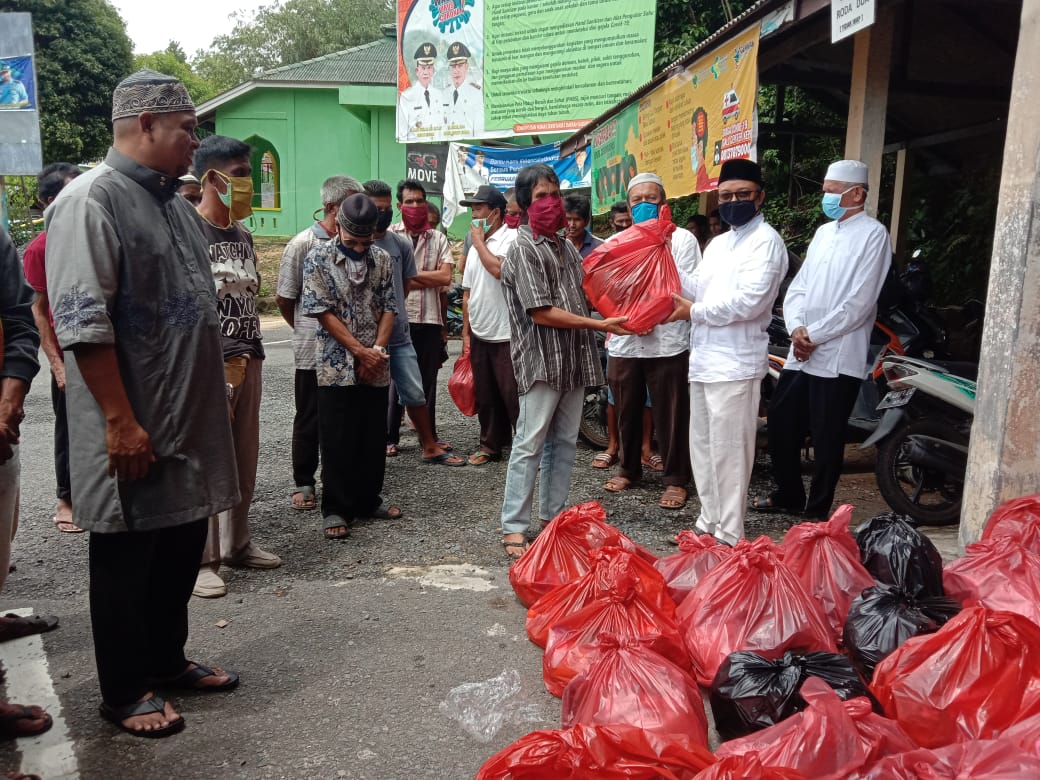 Paket sembako berisi Beras, Gula, Minyak Goreng, Mi Instan, Kopi dan Teh itu diserahkan kepada buruh Pelabuhan Jagoh, Kamis (30/4/2020) siang.