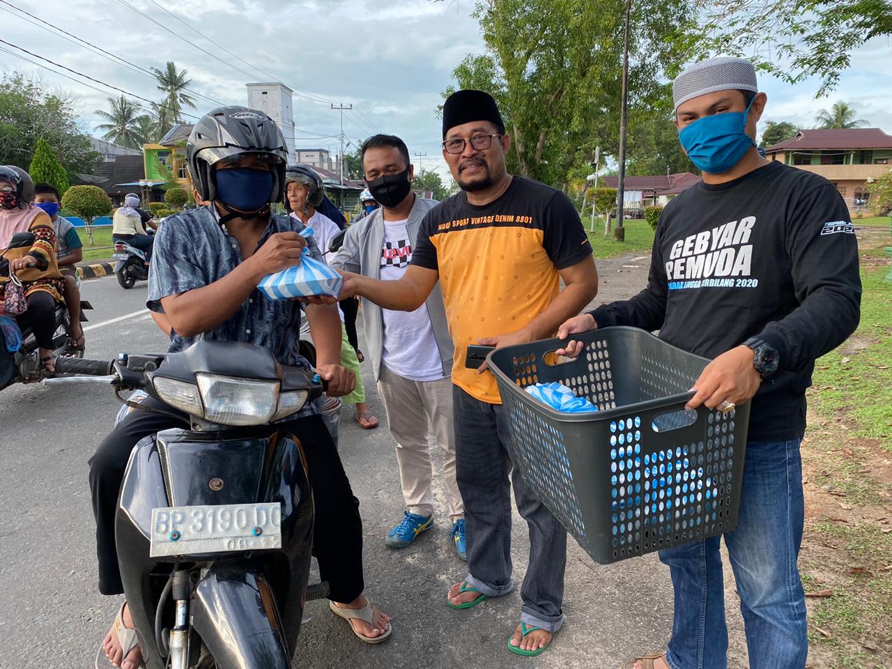 PIJARKEPRI.COM, Lingga – Anggota DPRD Lingga bersama pengurus Komite Nasional Pemuda Indonesia (KNPI) Lingga, membagikan ratusan paket takjil berbuka puasa untuk masyarakat, di Simpang 4 Wisma Ria dan Jalan Pasar Ikan, Dabo Singkep, Kabupaten Lingga, Kepulauan Riau, Minggu (17/5/2020).