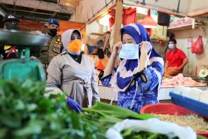 PIJARKEPRI.COM, Tanjungpinang – Disela meninjau stabilitas harga dan ketersediaan bahan pokok di Pasar Baru Tanjungpinang, Minggu (10/5/202). Pelaksana Tugas Walikota Tanjungpinang Rahma juga mengecek langsung kepatuhan masyarakat terhadap imbauan pemerintah terkait penggunaan masker saat beraktivitas di luar rumah.