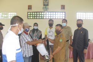 Kegiatan penyerahan perlengkapan dan alat penyemprotan disinfektan kepada pihak Rukun Warga (RW) oleh Wakil Bupati Lingga, Muhammad Nizar, bersama Ketua DPRD Lingga, Ahmad Nasiruddin, Plt. Camat Singkep, Agustiar, dan Lurah Dabo, Ima Rosida dilaksanakan secara simbolis di Gedung Sapta Pesona, Kelurahan Dabo.
