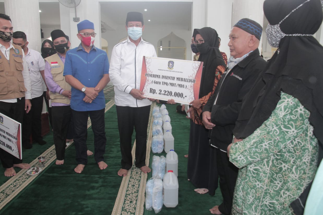 “Kita memberikan insentif kepada guru-guru TPQ, Imam Masjid, Hafiz Quran, serta penyerahan bantuan Hand Sanitizer dan Masker untuk rumah ibadah, dalam rangka percepatan penganganan Covid-19, juga melakukan silaturahmi halal bihalal bersama warga KKSS Lingga,” kata Plt Gubernur Kepri, Isdianto kepada media, Minggu (21/6/2020).