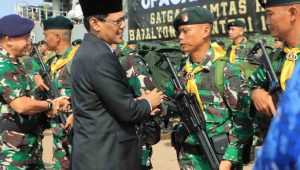 Wali Kota Batam, Amsakar Achmad, turut menyampaikan rasa bangga dan apresiasi Pemerintah Kota Batam atas pengabdian para prajurit yang akan melaksanakan tugas negara. (BEN)