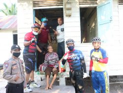 Sambil Bersepeda Polres Lingga Berbagi Sembako untuk Masyarakat Kurang Mampu